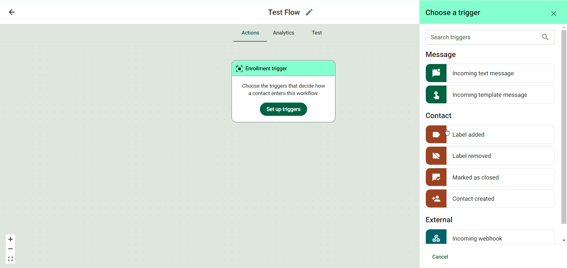 Incoming template message. We will understand the setup of all the types of triggers below: