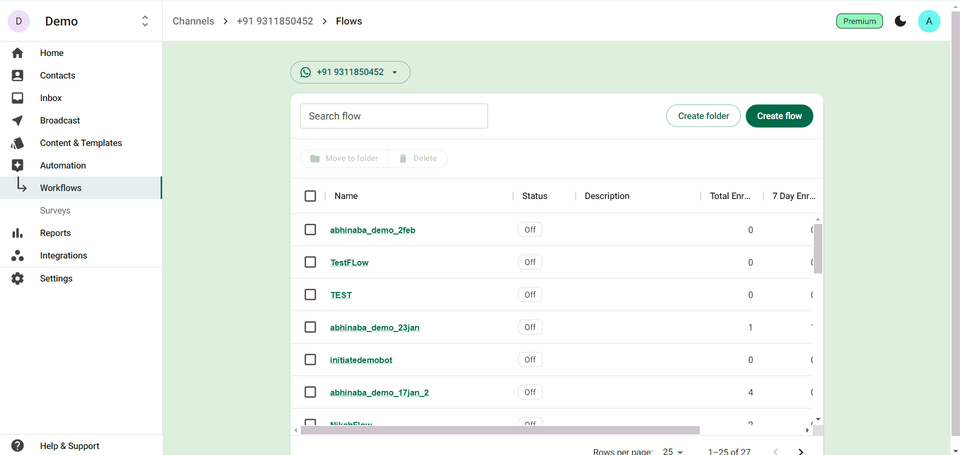 Step 2: From the Workflows Page, click on ‘Create flow’.