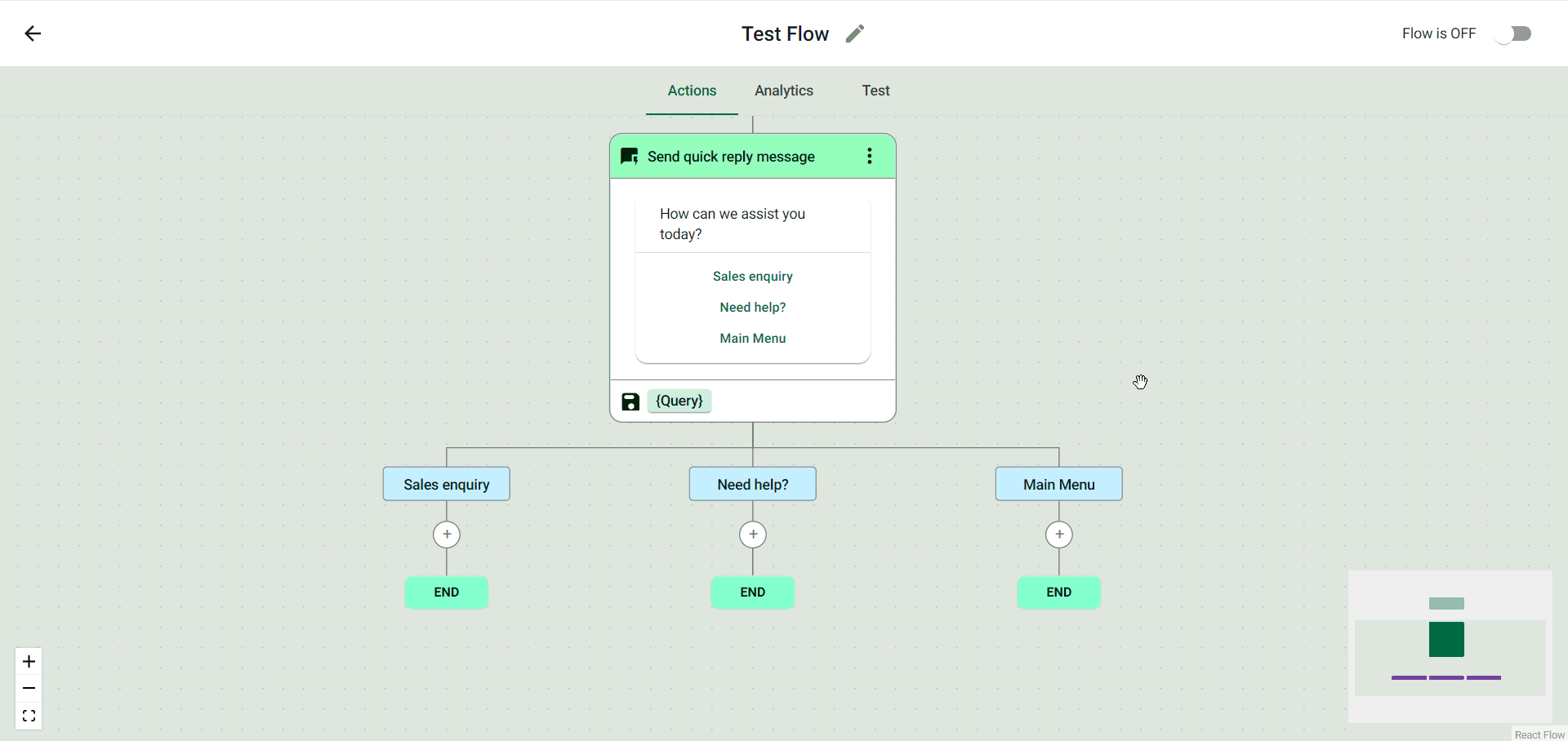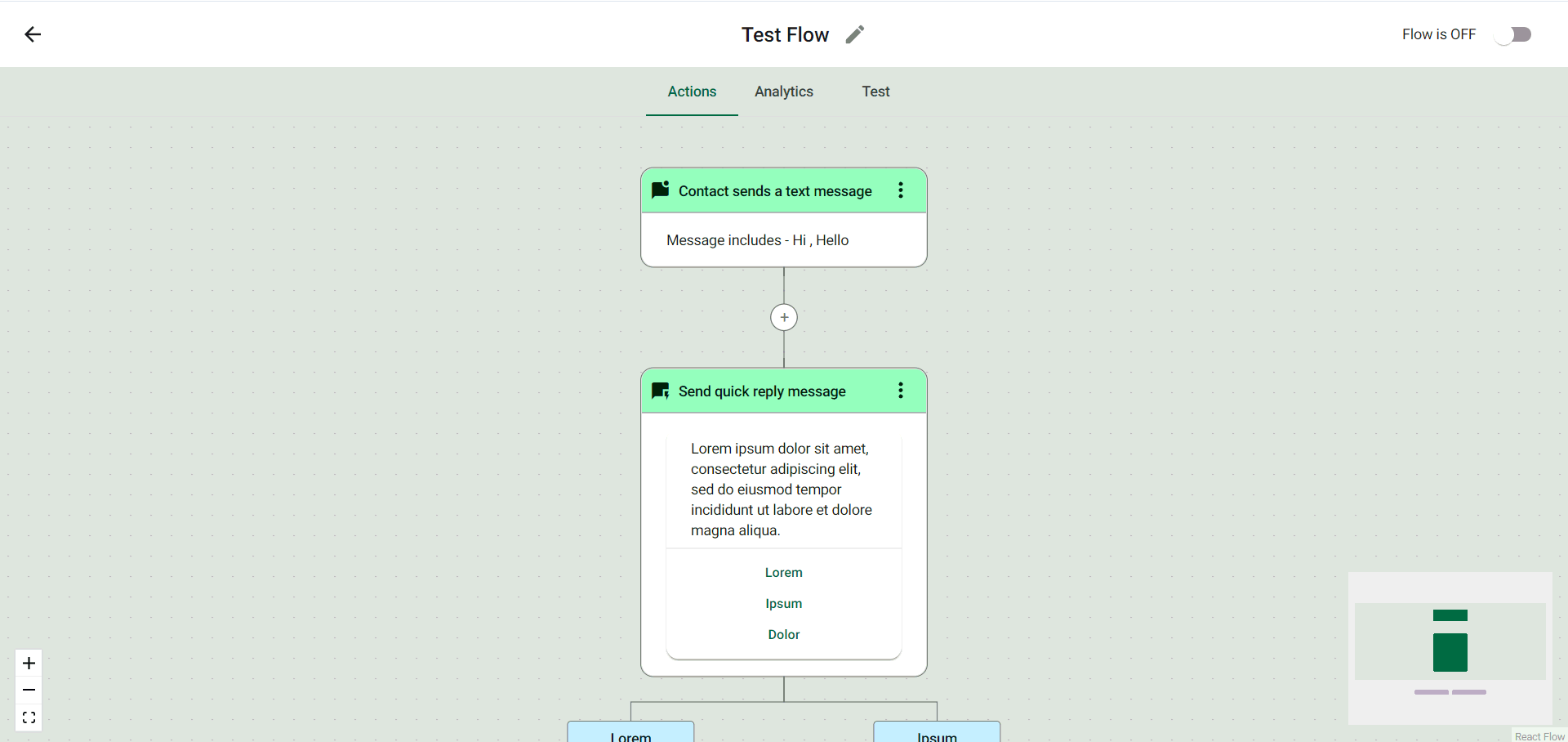In this scenario, whenever a trigger goes off, a quick reply message will be sent to the recipient.