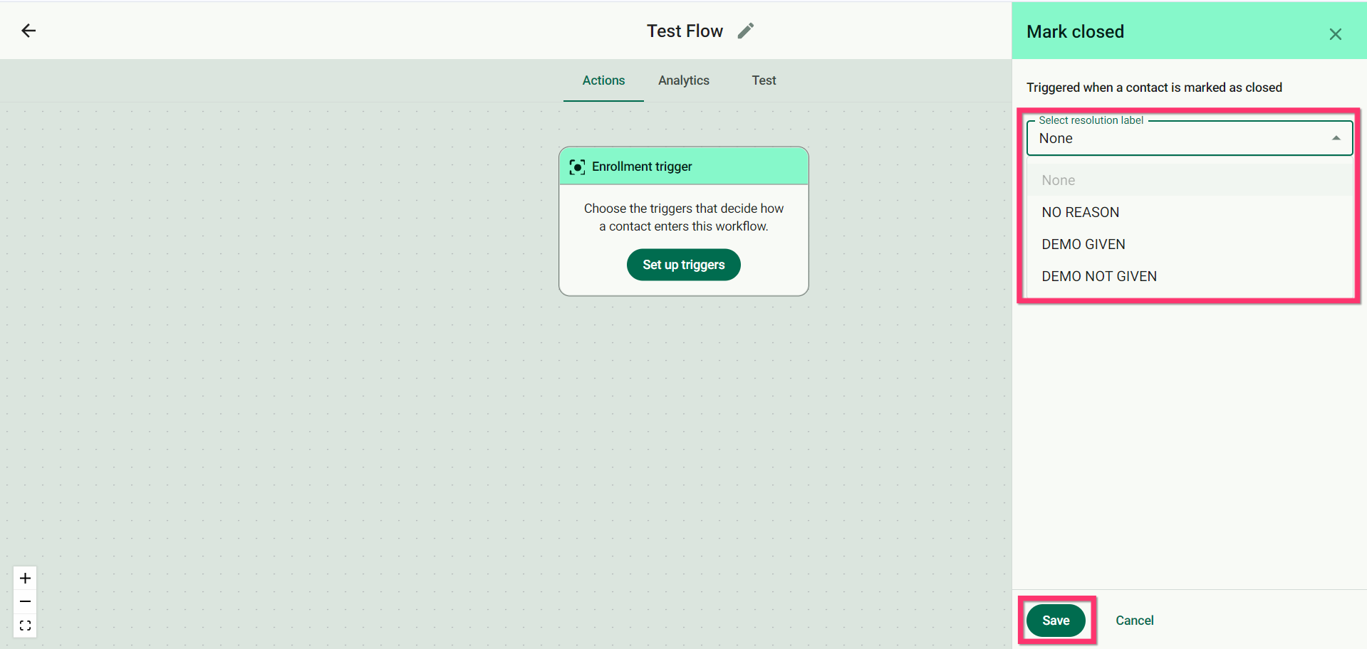 Congrats! You have successfully set up triggers using ‘Marked as closed’.