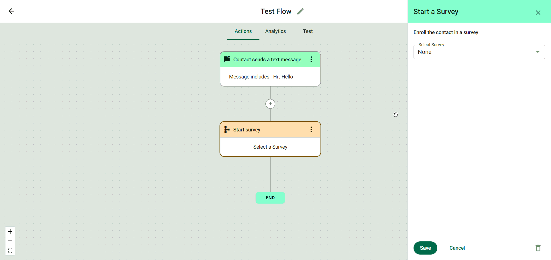 Congrats! You have now successfully set up the ‘Enroll in another flow’ action. 2.) Start Survey.