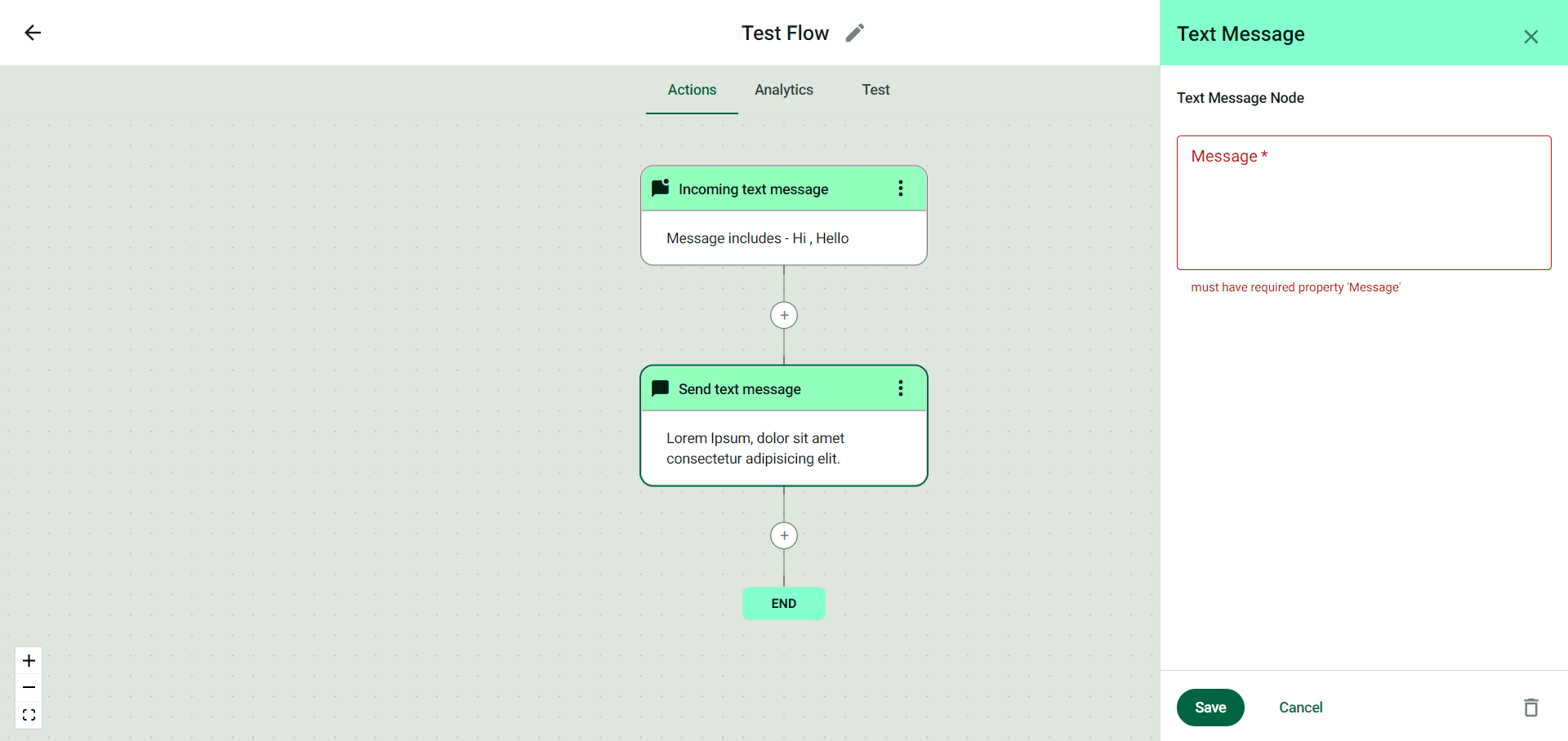 Step 3: Click on the Text Message action and edit the message and click on ‘Save’.