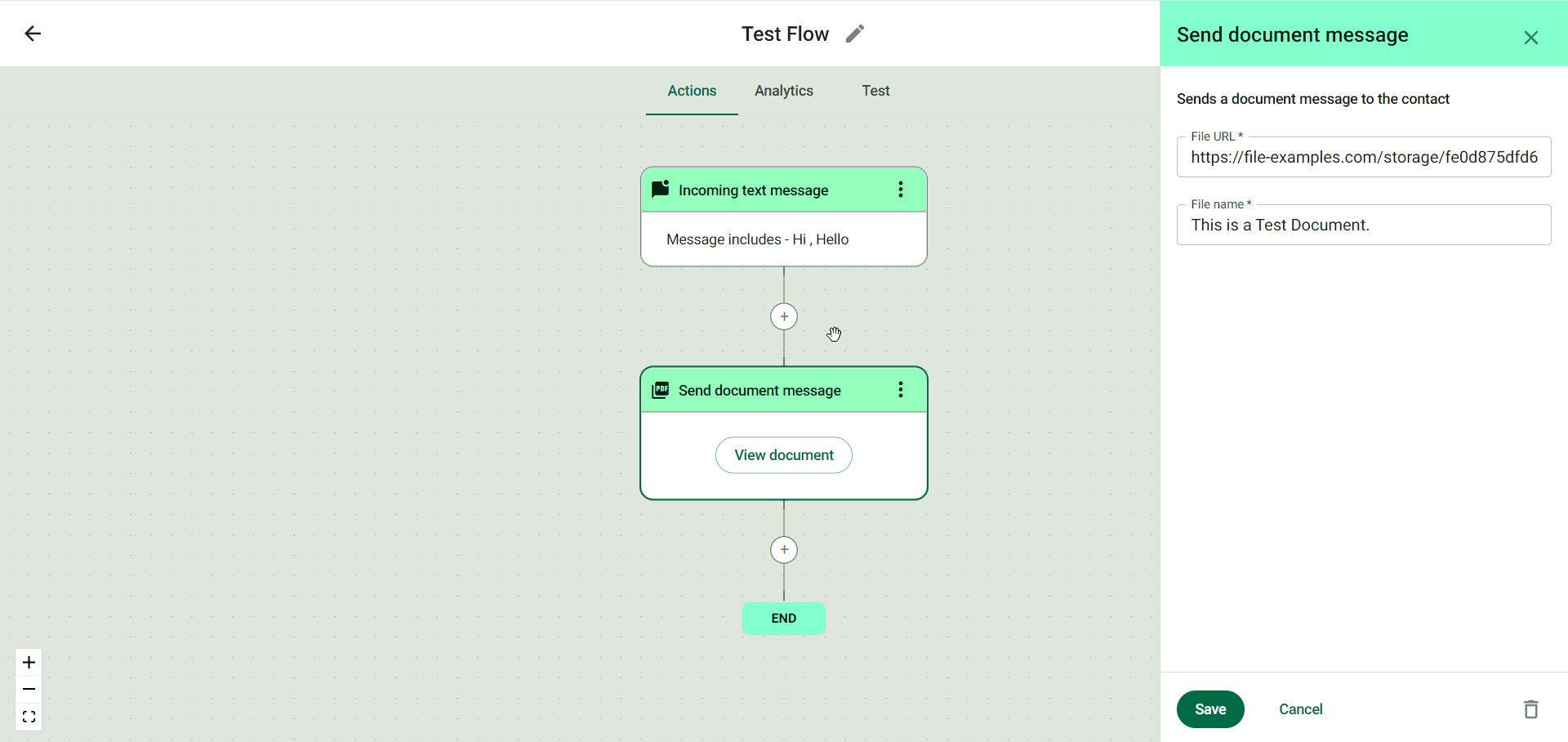 There you go! This is how ‘Send document message’ action is set up.