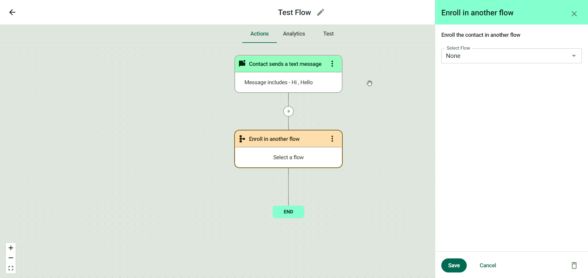 Step 4: Now, select the Flow that you would like to enroll in the current workflow and click on ‘Save’.