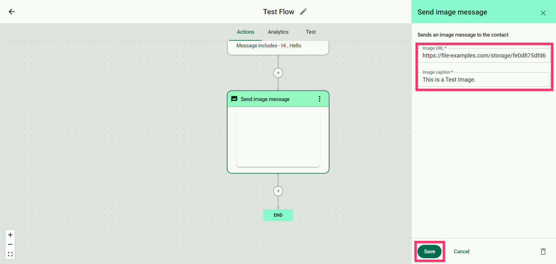 There you go! This is how ‘Send image message’ action is set up.