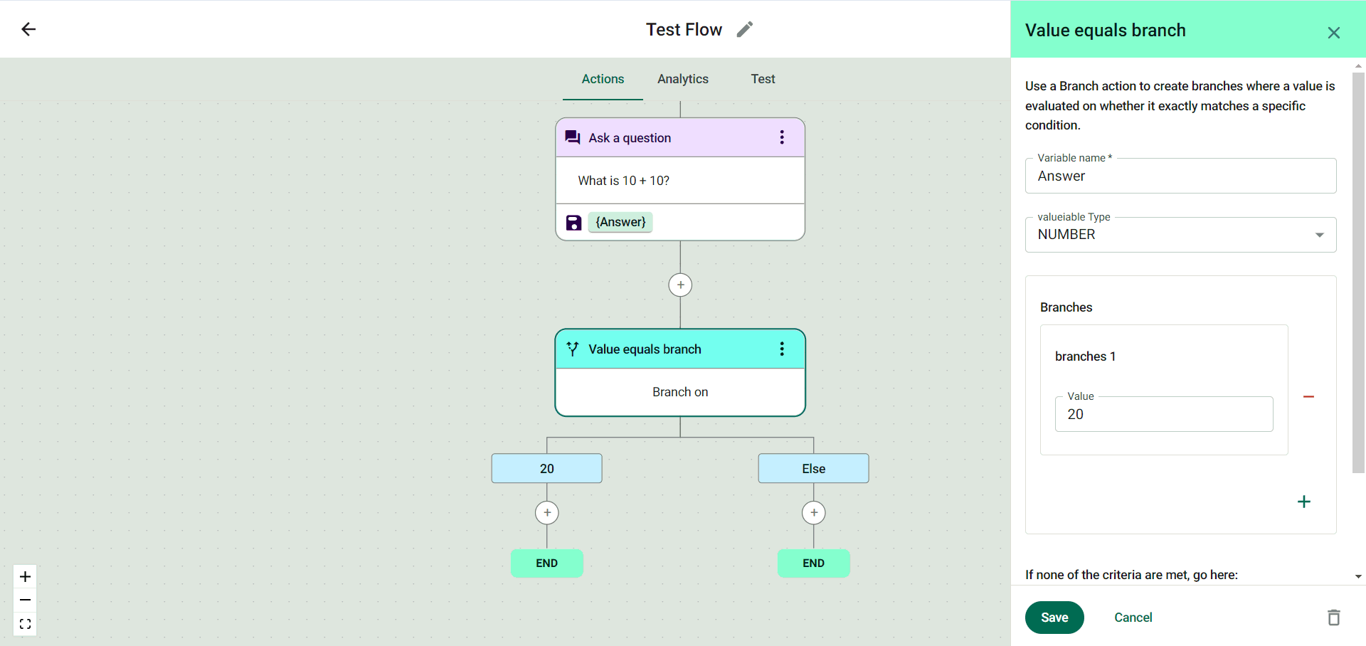 There you go! You have now successfully set up the ‘Value equals branch’ action.