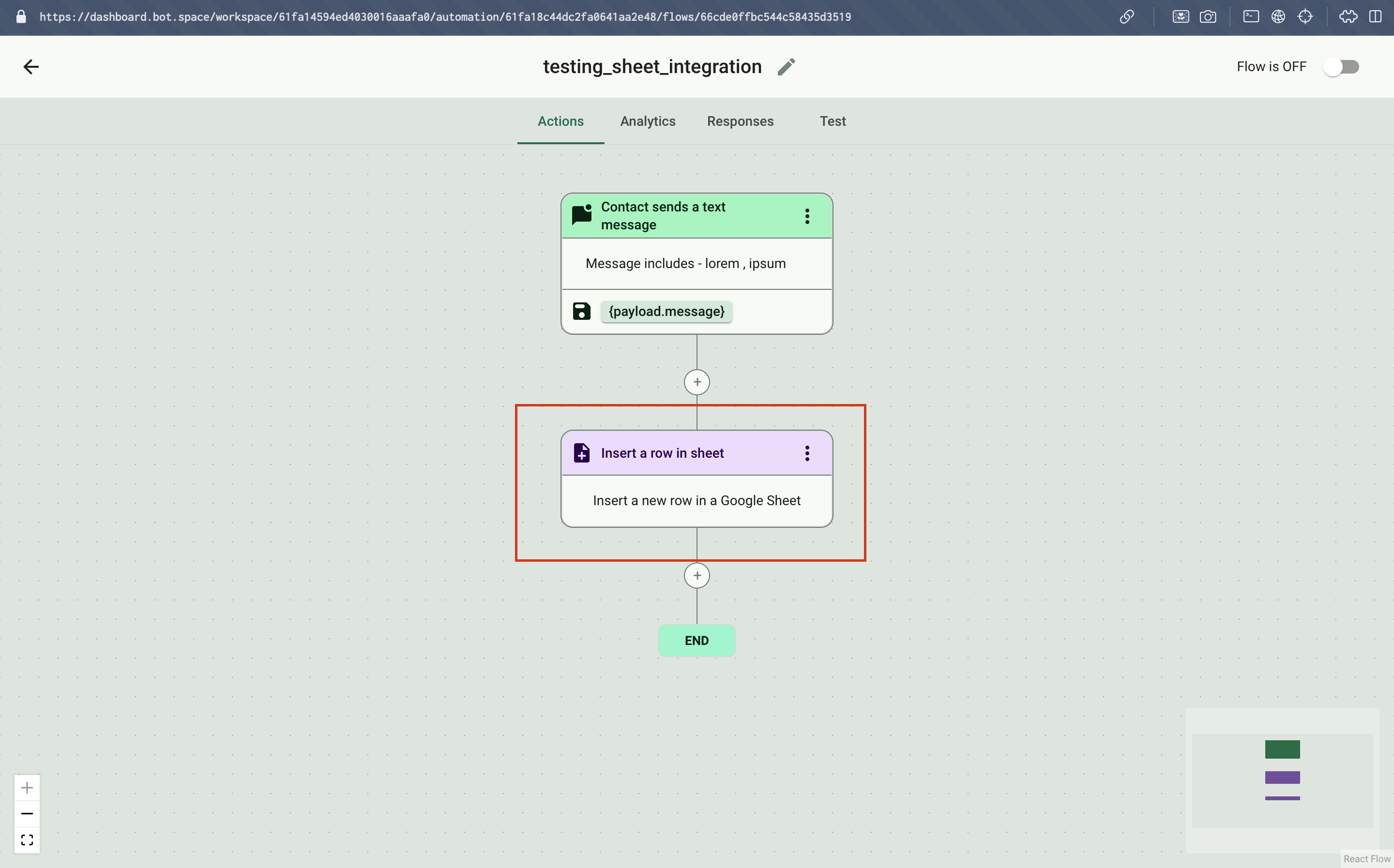Then you can use our new workflow action called Insert a row in sheet to add a new row in your spreadsheet.