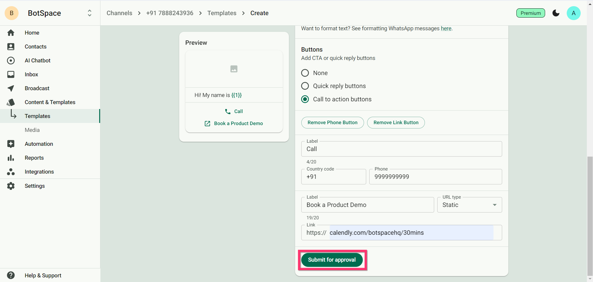 Step 7: You can add Quick Reply/ Call to action (CTA) buttons to your templates as well