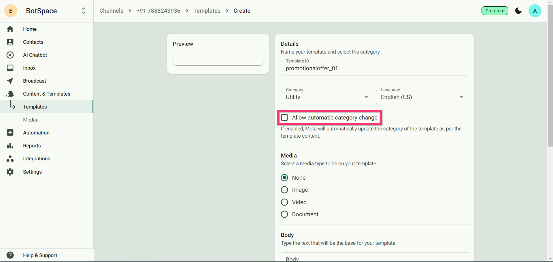 Step 1: From your BotSpace Dashboard’s Homepage, click on ‘Content & Templates’ and then on ‘Templates’.