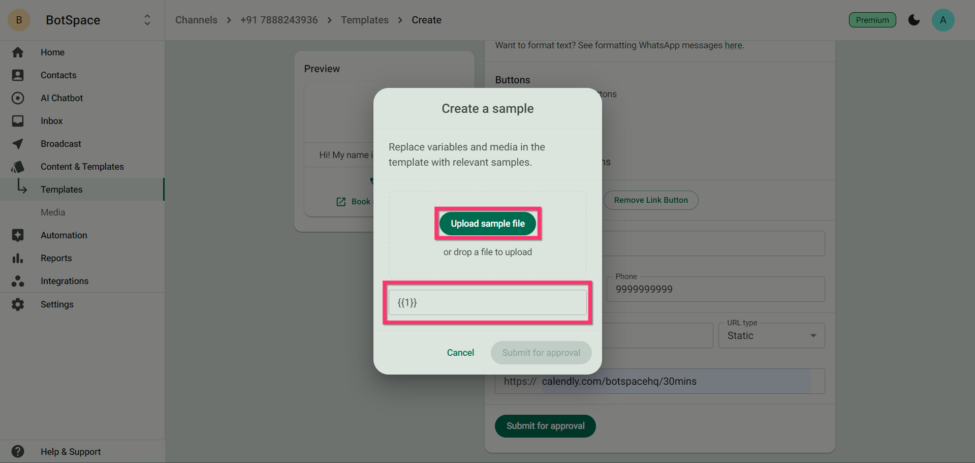 Step 9: Upload the Media File Attachment that you want in your template and also, enter the value to the variable/s used in your template.